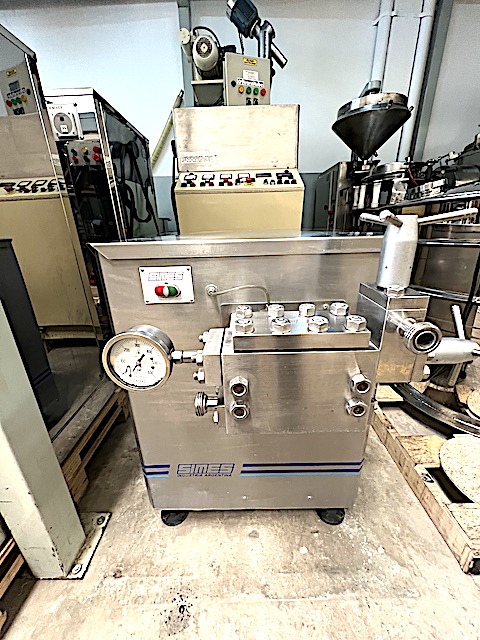 HOMOGEINIZADOR A PISTONES CONSTRUIDO EN ACERO INOXIDABLE MARCA ¨SIMES¨MODELO 2M3, CAPACIDAD NOMINAL EN AGUA 90 LITROS / HORA, MOTOR DE 3 KW. PRESION MAXIMA DE TRABAJO 400 BAR, PRESION ALIMENTACION PRODUCTO 0,5 A 2,5 BAR, TEMPERATURA MAXIMA OPERACIÓN 85 GRADOS, PRESION MAXIMA SALIDA DE PRODUCTO 5 BAR, 3 PISTONES DE 15,8 MM. X 20 MM. DE CARRERA, DIMENSIONES GENERALES: ALTURA 930 MM. X 850 MM. DE LARGO X 800 MM. DE ANCHO, CON MANUAL DEL FABRICANTE.