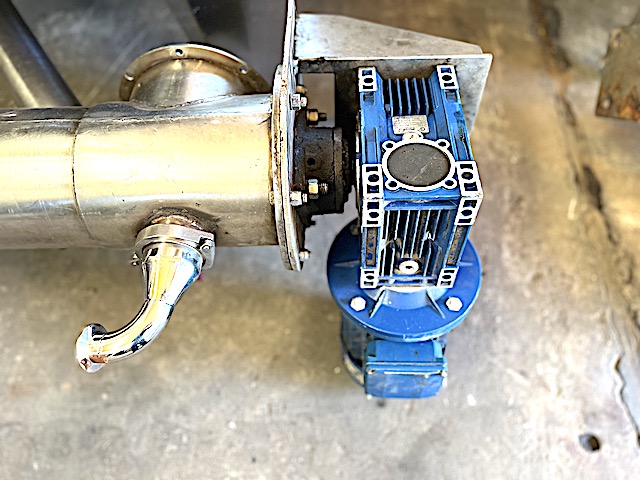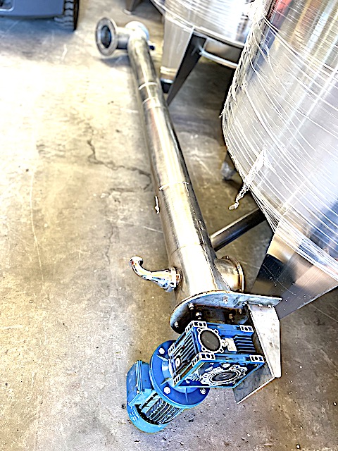 TORNILLO A SIN FIN TRANSPORTADOR DE POLVOS Y GRANULADOS CONSTRUIDO INTEGRAMENTE EN ACERO INOXIDABLE CALIDAD AISI 304 CON MOTOREDUCTOR DE 2 HP. LARGO 2.870 MM. X 300 MM. DE DIAMETRO, BOCA ENTRADA Y SALIDA DE 170 MM. DE DIAMETRO.