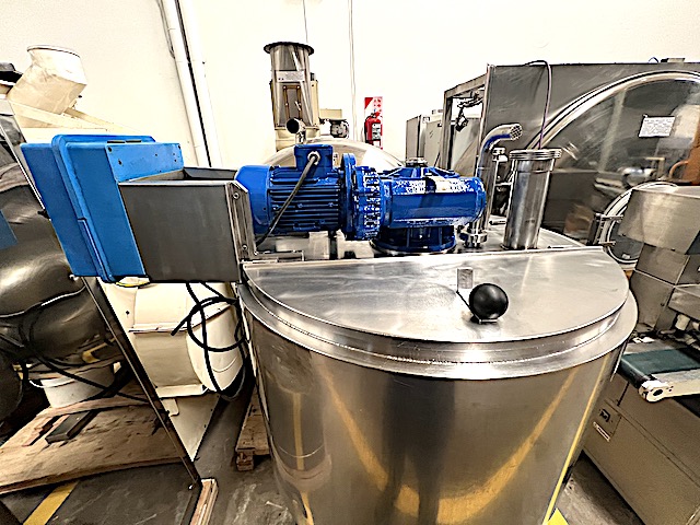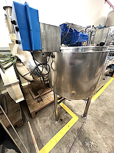 TANQUE CILINDRICO VERTICAL CONSTRUIDO EN ACERO INOXIDABLE CALIDAD AISI 316 PARA 400 LITROS DE CAPACIDAD NOMINAL TOTAL, ALTURA PARTE CILINDRICA 640 MM. X 800 MM. DE DIAMETRO ALTURA DE LA PARTE CONICA 540 MM. DE DIAMETRO CON CAMISA DE CALEFACCION / ENFRIAMIENTO, TECHO PLANO 1/2 TAPA REVATIBLE, MOTOREDUCTOR DE VELOCIDAD DE 2 HP. ANCLA CON RASPADORES DE TEFLON, DESCARGA INFERIOR DE 4¨ DE DIAMETRO, MONTADO SOBRE TRES PATAS DE 540 MM. DE ALTURA, 1.720 MM. DE ALTURA TOTAL, TABLERO DE CONTROL.