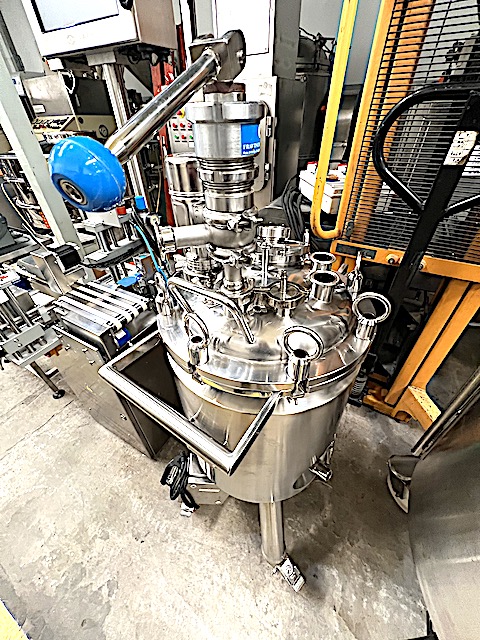 REACTOR CONSTRUIDO INTEGRAMENTE EN ACERO INOXIDABLE CALIDAD AISI 316 L MARCA ¨LAMPE LUTZ¨ PARA 40 LITROS DE CAPACIDAD NOMINAL DE CARGA TOTAL, ALTURA 550 MM. X 360 MM. DE DIAMETRO, CAMISA DE CALEFACCION -ENFRIAMIENTO (AISI 304) TAPA Y FONDO TORI ESFERICOS, BOCA DE INSPECCION DE 60 MM. DE DIAMETRO, SISTEMA DE LAVADO CIP, LAMPARA DE INSPECCION, INTERIOR PULIDO ESPEJO, AGITADOR LATERAL INFERIOR, MOTOREDUCTOR DE 0,5 HP. DESCARGA CENTRAL INFERIOR DE 1¨DE DIAMETRO, MONTADO SOBRE CUATRO PATAS CON RUEDAS.