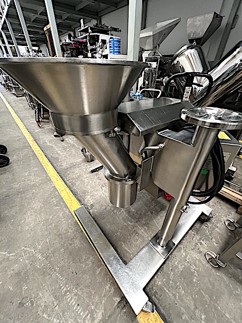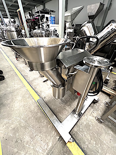MOLINO DE PANTALLA CONICA MARCA ¨GLATT¨ MODELO GS 180 CONSTRUIDO INTEGRAMENTE EN ACERO INOXIDABLE AÑO 1.999 CALIDAD AISI 316 CON MOTOR DE 3 HP. 1.440 RPM. TOLVA DE ALIMENTACION DE 250 MM DE DIAMETRO, DESCARGA INFERIOR DE 150 MM. DE DIAMETRO, (4) TAMICES PARA DIFERENTES GRANULOMETRIAS, DIMENSIONES GENERALES: LARGO 1.000 MM. X 800 MM. DE ANCHO X 1.300 MM. DE ALTURA.