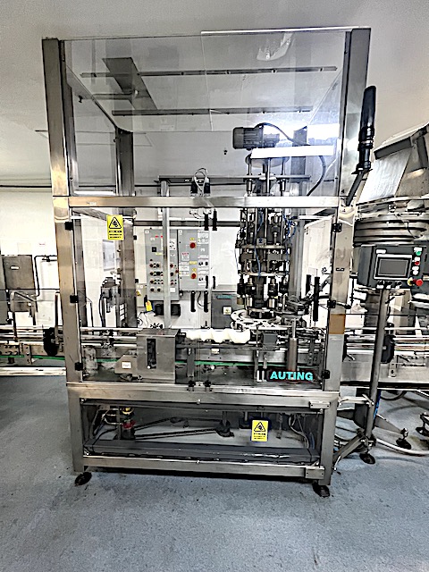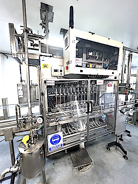 LINEA DE LLENADO AUTOMATICA CONSTRUIDA INTEGRAMENTE EN ACERO INOXIDABLE COMPUESTA POR ALIMENTADOR DE ENVASES, LLENADORA LINEAL DE 12 PICOS, TAPADORA ROTATIVA DE 6 CABEZALES DE ROSCADO, ETIQUETADORA DE DOBLE CABEZAL, CERRADORA DE CAJAS.