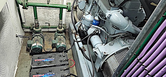 GRUPO ELECTRÓGENO CON MOTOR SCANIA DS 11. Nº MOTOR: 8701398 GENERADOR CROMACO, TIPO 62R 280 M8/4. Nº: 24236 VOLTAJE: 380 V CAPACIDAD: 250/275 KVA , TORRE DE ENFRIAMIENTO COLD DROP MODELO: CD 0808/9 MOTOR DEL VENTILADOR: 1 HP EXTRACTOR DE LA SALA MARCA: ROMMEL VOLTAJE: 380 V. MOTOR: 3 HP. 2 BOMBAS DE AGUA MARCA: WEG VOLTAJE: 380 V. MOTOR: 3 HP LA SALA CUENTA CON UNA AISLACIÓN ACÚSTICA EN PAREDES Y CIELORRASO COMPUESTA DE LANA DE VIDRIO COMPACTA DE 50 MM DE ESPESOR, RECUBIERTA CON CHAPA MULTIPERFORADA Y PINTADA.