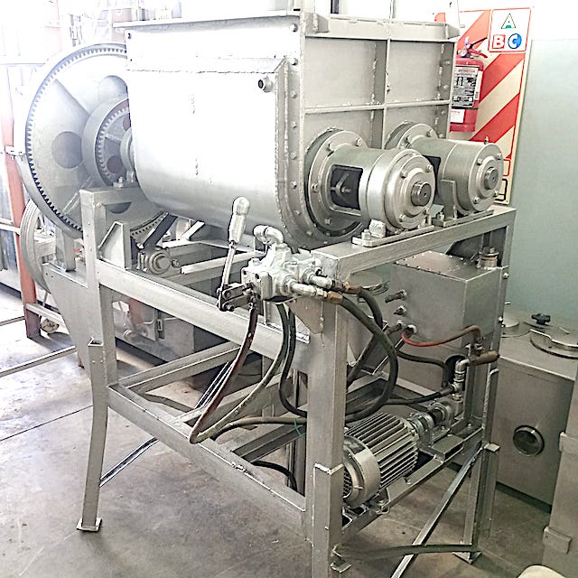 AMASADORA DOBLE ZZ CONSTRUIDA EN ACERO AL CARBONO PARA 200 LITROS DE CAPACIDAD NOMINAL DE CARGA TOTAL, BATEA: ANCHO 610 MM. X 620 MM. DE LARGO X 530 MM. DE ALTURA VUELCO CON BOMBA HIRAULICA MOTORE DE 1 HP. CAMISA DE CALEFACCION ENFRIAMIENTO, DIMENSIONES GENERALES: LARGO 1.700 MM. X 1.250 MM.DE ANCHO X 1.750 MM. DE ALTURA.