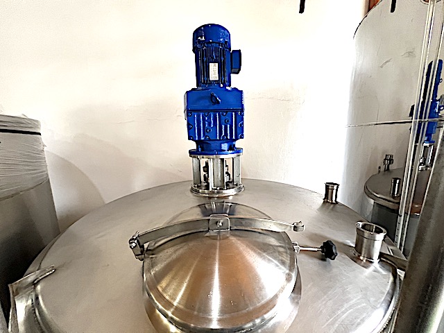 TANQUE CILINDRICO VERTICAL MARCA ÏMAI¨CONSTRUIDO EN ACERO INOXIDABLE CALIDAD AISI 316 PARA 4.500 LITROS DE CAPACIDAD NOMINAL TOTAL, ALTURA 1.770 MM. X 1.720 MM. DE DIAMETRO CON CAMISA DE CALEFACCION / ENFRIAMIENTO, PRESION MAXIMA DE 3 BAR, MOTOREDUCTOR DE VELOCIDAD DE 4 KW. 1.435 RPM. SALIDA DEL REDUCTOR 15 RPM. ANCLA A PALETAS, BOCA ENTRADA DE HOMBRE LATERAL SUPERIOR DE 450 MM. DE DIAMETRO CON TAPA DE CIERRE HERMETICO, ESCALERA LATERAL, DESCARGA INFERIOR DE 3¨DE DIAMETRO, MONTADO SOBRE CUATRO PATAS DE 730 MM. DE ALTURA, 3.690 MM. DE ALTURA TOTAL.