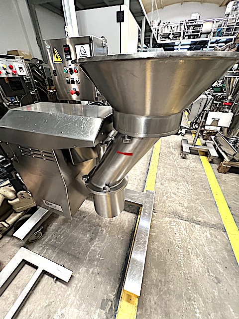 MOLINO DE PANTALLA CONICA MARCA ¨GLATT¨ MODELO GS 180 CONSTRUIDO INTEGRAMENTE EN ACERO INOXIDABLE AÑO 1.999 CALIDAD AISI 316 CON MOTOR DE 3 HP. 1.440 RPM. TOLVA DE ALIMENTACION DE 250 MM DE DIAMETRO, DESCARGA INFERIOR DE 150 MM. DE DIAMETRO, (4) TAMICES PARA DIFERENTES GRANULOMETRIAS, DIMENSIONES GENERALES: LARGO 1.000 MM. X 800 MM. DE ANCHO X 1.300 MM. DE ALTURA.