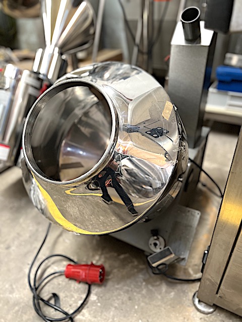 PAILA GRAJEADORA DE O DE RECUBRIMIENTO CONSTRUIDA EN ACERO INOXIDABLE CALIDAD AISI 304 , POTENCIA DEL MOTOR 0,5 HP. Y REDUCTOR DE VELOCIDAD, CAPACIDAD DE PRODUCCION ESTIMADA: 10 KG. DIMENSIONES DE LA PAILA: DIAMETRO MAXIMO: 420 MM. BOCA DE 220 MM. DE DIAMETRO, PROFUNDIDAD 380 MM. DIMENSIONES GENERALES: LARGO 700 MM. X 500 MM. DE ANCHO X 800 MM. DE ALTURA.
