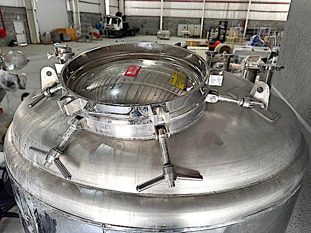 TANQUE CILINDRICO VERTICAL CONSTRUIDO EN ACERO INOXIDABLE CALIDAD AISI 316 L PARA 3.000 LITROS DE CAPACIDAD NOMINAL, DIAMETRO 1.300 MM. X 1.830 MM. DE ALTURA, CON CAMISA DE CALEFACCION, RESISTENCIAS ELECTRICAS, AISLACION TERMICA, TECHO Y FONDO TORIESFERICOS, BOCA ENTRADA DE HOMBRE DE CIERRE HERMETICO DE 450 MM. DE DIAMETRO, DESCARGA CENTRAL INFERIOR DE 2¨DE DIAMETRO, MONTADO SOBRE CUATRO PATAS, ALTURA TOTAL 2.350 MM.