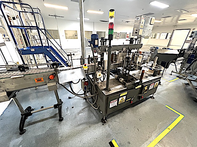 LINEA DE LLENADO AUTOMATICA CONSTRUIDA INTEGRAMENTE EN ACERO INOXIDABLE COMPUESTA POR ALIMENTADOR DE ENVASES, LLENADORA LINEAL DE 12 PICOS, TAPADORA ROTATIVA DE 6 CABEZALES DE ROSCADO, ETIQUETADORA DE DOBLE CABEZAL, CERRADORA DE CAJAS.