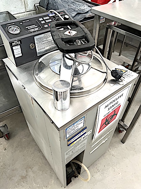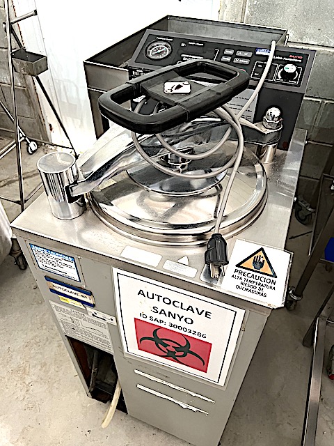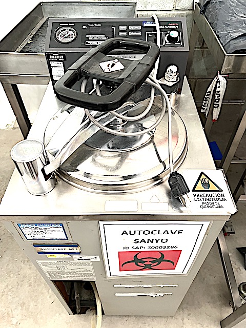 AUTOCLAVE MARCA -SANYO- MODELO LABE MLS-3020 PARA VAPOR CONSTRUIDO EN ACERO INOXIDABLE PARA 30 LITROS, 300 MM. DE DIAMETRO X 660 MM. DE ALTURA, DIMENSIONES GENERALES: 1.100 MM. DE ALTURA X 520 MM. DE LARGO X 450 MM. DE ANCHO.