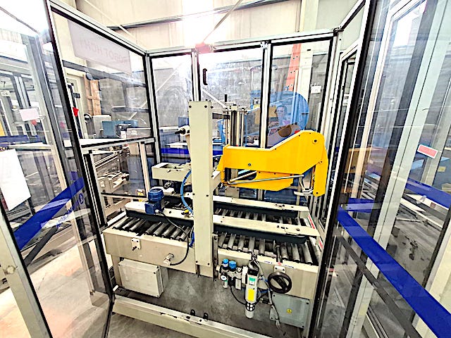 ROBOT ENCAJONADOR MARCA ¨TECNICROM¨ COMPUESTO POR ROBOT MARCA ¨FANUC¨M10 (ADMITE VARIAS CONFIGURACIONES DE FORMATO) ARMADORA DE CAJAS Y CERRADORA DE CAJAS MARCA ¨SIAT¨ ESTE EQUIPO ENCAJONABA TOALLAS FEMENINAS PERO SE PUEDE CONFIGURAR PARA MUCHOS PRODUCTOS.